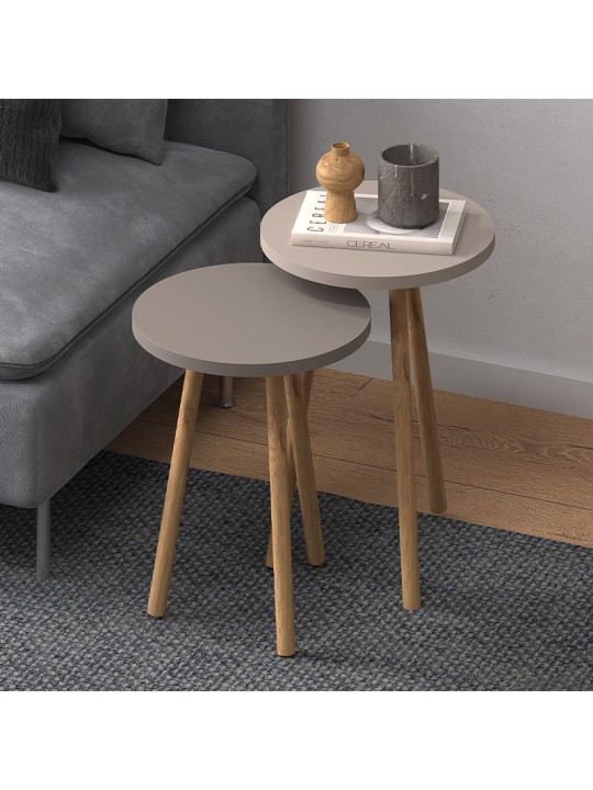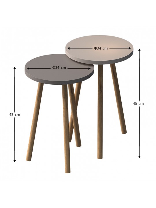 Τραπεζάκια βοηθητικά σετ 2 τμχ Roma Megapap χρώμα κρεμ - cappuccino Ø34x46εκ.