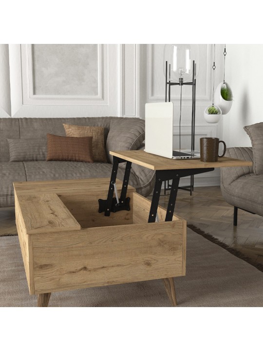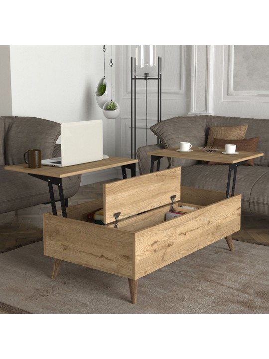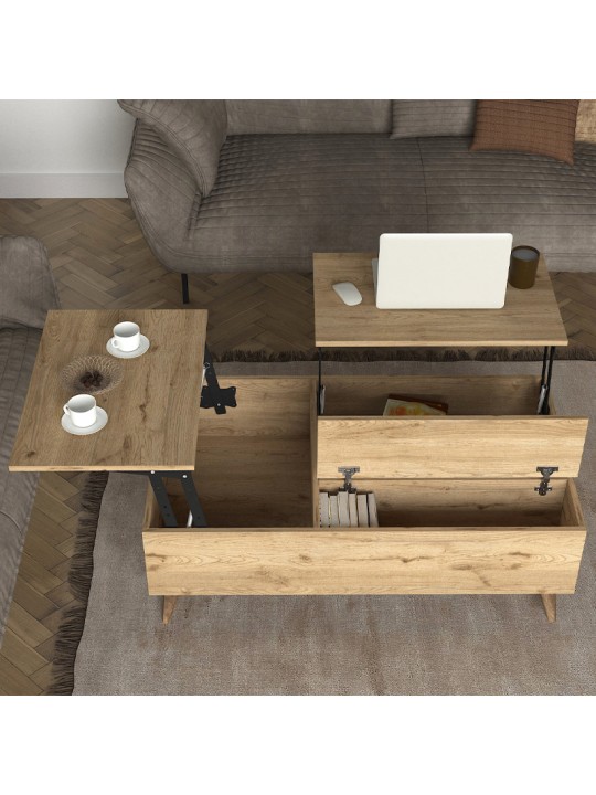 Το τραπεζάκι σαλονιού Roy διαθέτει μηχανισμό που επιτρέπει να σηκωθεί η επιφάνεια του σε θέση σερβιρίσματος για το φαγητό ή το laptop, δημιουργώντας χώρο για την αποθήκευση αντικειμένων στο εσωτερικό του.