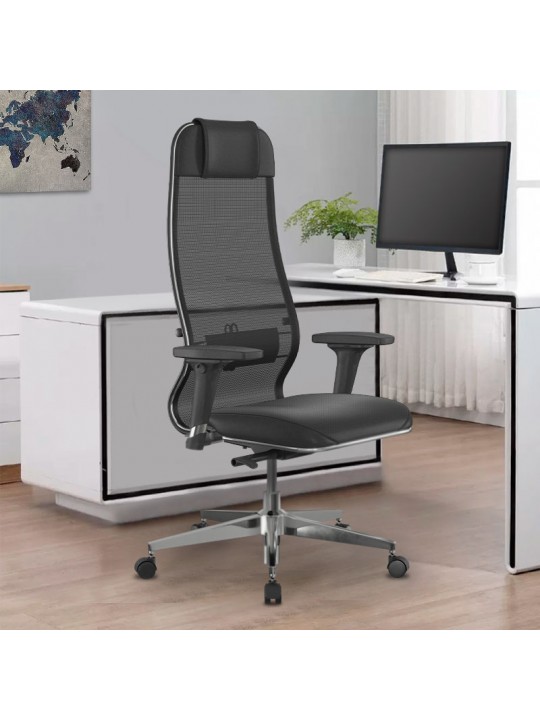 Καρέκλα γραφείου Synchrosit-10 Megapap εργονομική με διπλό ύφασμα Mesh και τεχνόδερμα χρώμα μαύρο 65x70x121/134εκ.