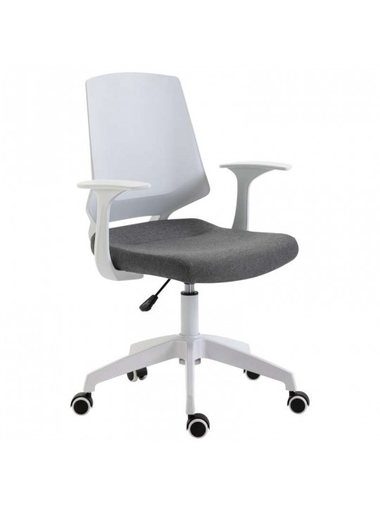 A1150-W πολυθρόνα γραφείου με minimal σχεδίαση και λευκή πλάτη χωρίς υφασμάτινη επένδυση για μέγιστη ευκολία στο καθάρισμα και ανθεκτικότητα. Η έδρα είναι ενδεδυμένη με γκρι ύφασμα και προσφέρει ξεκούραστο κάθισμα. Τα μπράτσα το αμορτισέρ και η βάση είναι λευκά. Το κάθισμα ρυθμίζεται στο επιθυμητό ύψος ανάλογα με το ύψος του γραφείου που χρησιμοποιούμε και το ύψος του χρήστη.