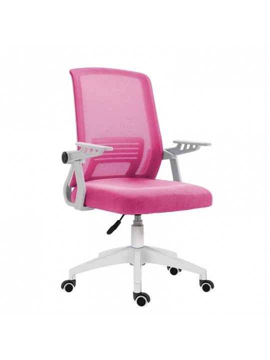 Α1180W πολυθρόνα γραφείου με ιδιαίτερο σχεδιασμό και εργονομικό σχήμα πλάτης για την καλύτερη στήριξη της μέσης και πτυσσόμενα μπράτσα για πολύωρη χρήση. Ο σκελετός του καθίσματος είναι σε λευκό χρώμα, πλάτη και έδρα είναι ενδεδυμένα με ροζ mesh ύφασμα για να αποτρέπει την εφίδρωση. Το κάθισμα διαθέτει μηχανισμό αυξομείωσης του ύψους με αμορτισέρ ενώ η βάση είναι μεταλλική για απόλυτη αντοχή.
