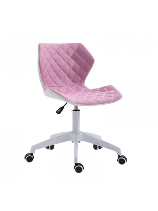 A1700-W καρέκλα γραφείου με εντυπωσιακό design, επένδυση από ύφασμα καπιτονέ σε ροζ χρώμα και από την πίσω πλευρά του καθίσματος η πλάτη είναι σε λευκό PU. Το κάθισμα ρυθμίζεται στο επιθυμητό ύψος και κάνει πλήρη περιστροφή. Η βάση και το αμορτισέρ του καθίσματος είναι μεταλλικά λευκά για μεγαλύτερη αντοχή.