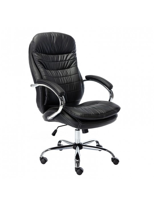 A4400 πολυθρόνα διευθυντική σε μοντέρνα γραμμή και άνετο κάθισμα με διακοσμητικά γαζιά σε μαύρο χρώμα PU.Με μπράτσα χρωμίου ενδεδυμένα με μαύρο PU.Ρυθμιζόμενο ύψος και πόδι χρωμίου για μεγαλύτερη αντοχή.Συνδυάζεται άνετα σε όλους τους χώρους.