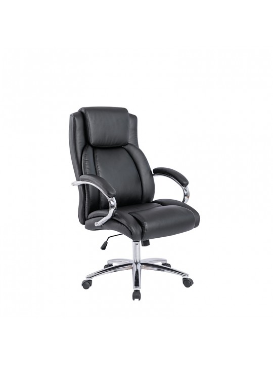 A5200 πολυθρόνα διαχρονική, διευθυντική με ρυθμιζόμενο ύψος που συνδυάζει ψηλή άνετη πλάτη δίνοντας αίσθηση πολυτελείας στο χώρο σας,ενδεδυμένη με μαύρο PU.Τα μπράτσα της είναι χρωμίου φαρδιά με μαξιλαράκι για άνετο στήριγμα των χεριών.Διαθέτει πόδι χρωμίου για μεγαλύτερη αντοχή.