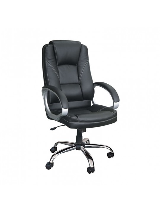 A5600 CH πολυθρόνα διαχρονική, διευθυντική με ρυθμιζόμενο ύψος που συνδυάζει ψηλή άνετη πλάτη δίνοντας αίσθηση πολυτέλειας στο χώρο σας, ενδεδυμένο με μαύρο PU. Διαθέτει σταθερά μπράτσα ενδεδυμένα και πόδι χρωμίου για μεγαλύτερη αντοχή.