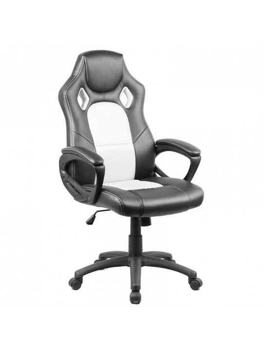 A6160 πολυθρόνα διευθυντική τύπου bucket,ιδιαίτερη γραμμή και σχεδιασμός με ρυθμιζόμενο ύψος και σταθερά ενδεδυμένα με μαύρο PU μπράτσα.Διατίθεται περιμετρικά σε μαύρο χρώμα PU,με ιδιαίτερο χρωματισμό στο κέντρο με λευκή απόχρωση PU σε κάθισμα και πλάτη.