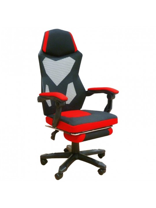 A6220 gaming πολυθρόνα με ιδιαίτερο design στην πλάτη,ενδεδυμένη με mesh ύφασμα σε χρώμα μαύρο/κόκκινο για να αναπνέει η πλάτη.Διαθέτει επεκτεινόμενο υποπόδιο που προσφέρει μεγαλύτερη άνεση και ξεκούραση.Με ρυθμιζόμενο ύψος και άνετα μπράτσα ενδεδυμένα με mesh ύφασμα.