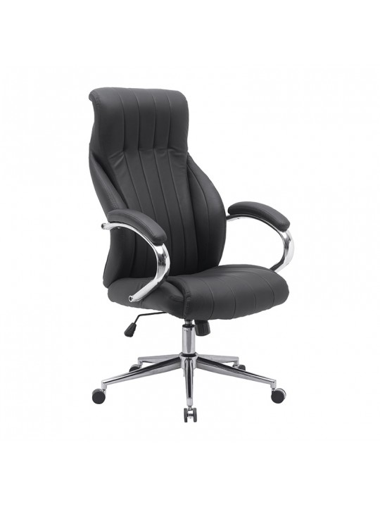 A8960 πολυθρόνα διευθυντική σε μοντέρνα γραμμή και άνετο κάθισμα με διακοσμητικά γαζιά σε μαύρο χρώμα PU.Με μπράτσα χρωμίου ενδεδυμένα με μαύρο PU.Ρυθμιζόμενο ύψος και πόδι χρωμίου για μεγαλύτερη αντοχή.Συνδυάζεται άνετα σε όλους τους χώρους.