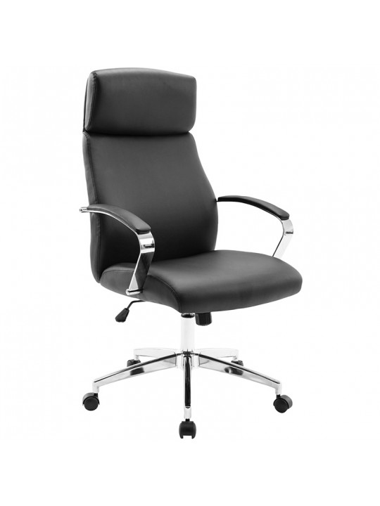 A8970 πολυθρόνα διευθυντική σε μοντέρνα γραμμή και άνετο κάθισμα με διακοσμητικά γαζιά σε μαύρο χρώμα PU.Με μπράτσα χρωμίου ενδεδυμένα με μαύρο PU.Ρυθμιζόμενο ύψος και πόδι χρωμίου για μεγαλύτερη αντοχή.Συνδυάζεται άνετα σε όλους τους χώρους.