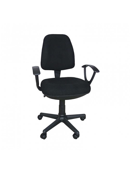 BS750 πολυθρόνα γραφείου με ρυθμιζόμενο ύψος και άνετο κάθισμα, πλάτη και κάθισμα ενδεδυμένο με μαύρο ύφασμα.