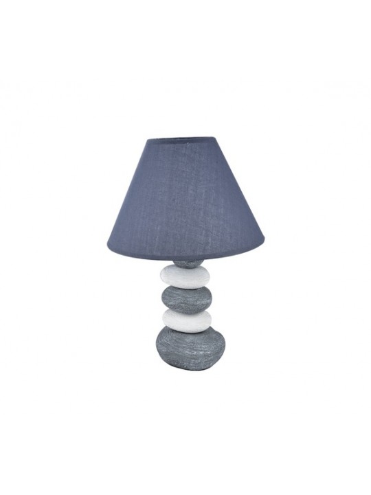 Φωτιστικό επιτραπέζιο σε σχήμα βότσαλο με κεραμική βάση και υφασμάτινο καπέλο