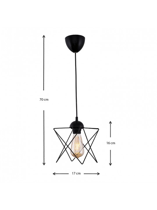 Φωτιστικό οροφής Faven Megapap E27 μεταλλικό μονόφωτο χρώμα μαύρο 17x17x70εκ.