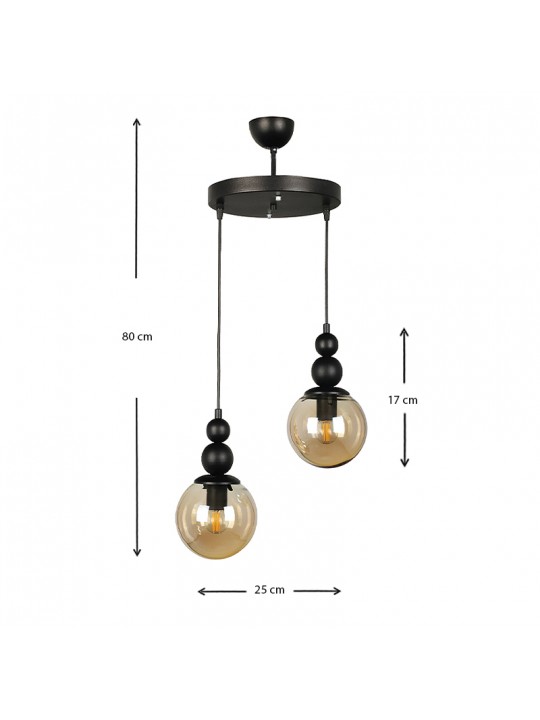Φωτιστικό οροφής Latona Megapap E27 μεταλλικό δίφωτο χρώμα μαύρο 25x25x80εκ.