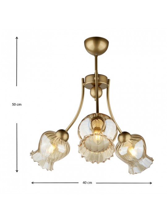 Φωτιστικό οροφής Kobe Megapap E27 μεταλλικό τρίφωτο χρώμα χρυσό 40x40x50εκ.