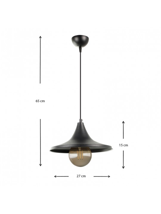 Φωτιστικό οροφής Silia Megapap E27 μεταλλικό μονόφωτο χρώμα μαύρο 27x27x65εκ.