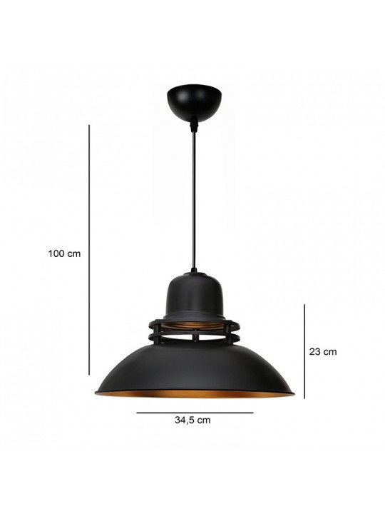 Φωτιστικό οροφής Gerek Megapap E27 μεταλλικό μονόφωτο χρώμα μαύρο Ø34,5x100εκ.