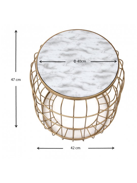 Σκαμπώ - τραπεζάκι βοηθητικό Muller Megapap μεταλλικό - Mdf χρώμα χρυσό - λευκό 35x35x47εκ.