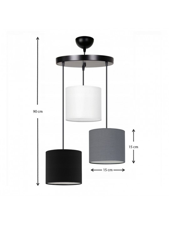 Φωτιστικό οροφής Rosie Megapap υφασμάτινο τρίφωτο χρώμα γκρι/μαύρο 15x15x90εκ.