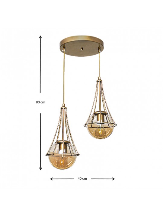 Φωτιστικό οροφής Chavi Megapap E27 μεταλλικό δίφωτο χρώμα χρυσό 40x40x80εκ.