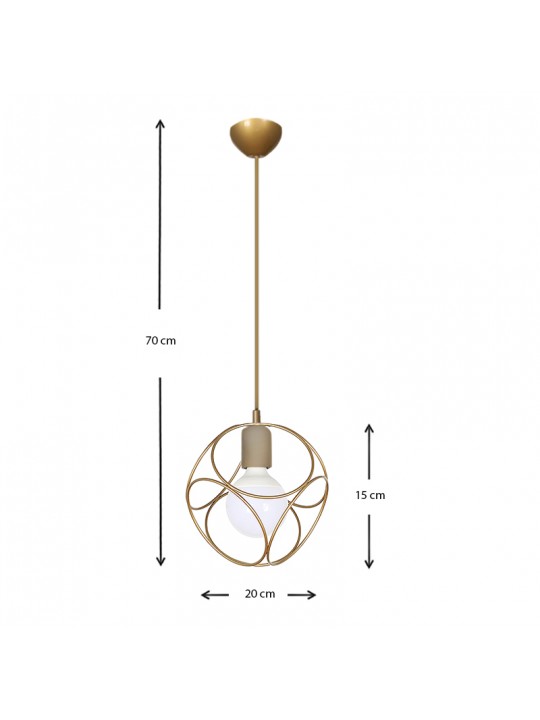 Φωτιστικό οροφής Lusita Megapap E27 μεταλλικό μονόφωτο χρώμα χρυσό 20x20x70εκ.