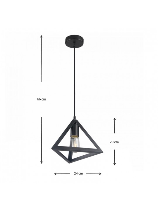 Φωτιστικό οροφής Roshan Megapap E27 μεταλλικό μονόφωτο χρώμα μαύρο 24x24x66εκ.