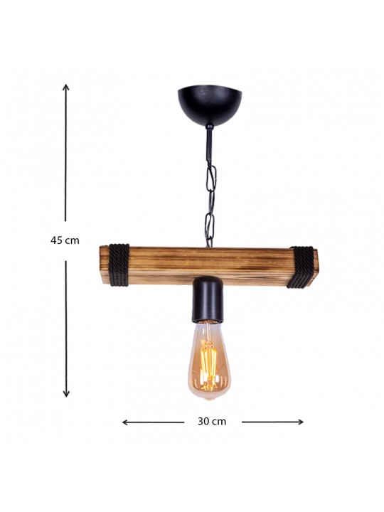 Φωτιστικό οροφής Mako Megapap E27 ξύλινο μονόφωτο χρώμα καρυδί/μαύρο 30x10x45εκ.