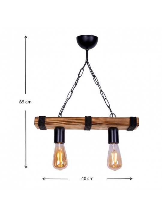 Φωτιστικό οροφής Mako Megapap E27 ξύλινο δίφωτο χρώμα καρυδί/μαύρο 40x10x65εκ.
