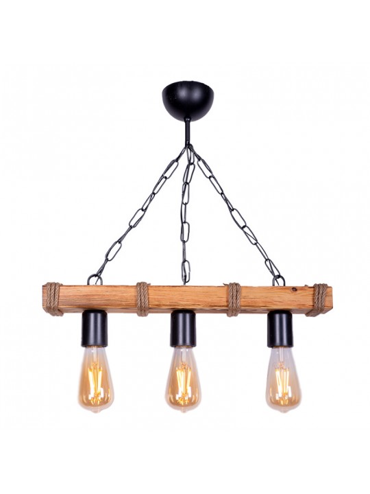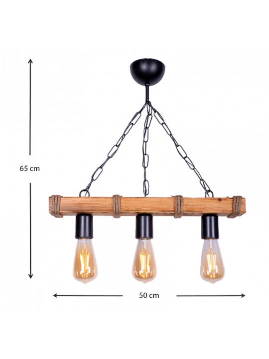 Φωτιστικό οροφής Mako Megapap E27 ξύλινο τρίφωτο χρώμα καρυδί/φυσικό 50x10x65εκ.