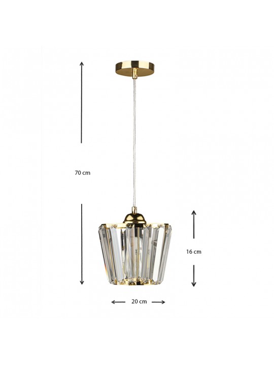 Φωτιστικό οροφής Neva Megapap E27 γυάλινο μονόφωτο χρώμα χρυσό 20x20x70εκ.