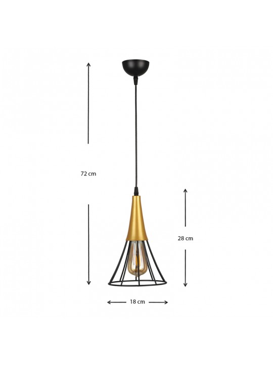 Φωτιστικό οροφής Havana Megapap E27 μεταλλικό μονόφωτο χρώμα μαύρο - χρυσό 18x18x72εκ.