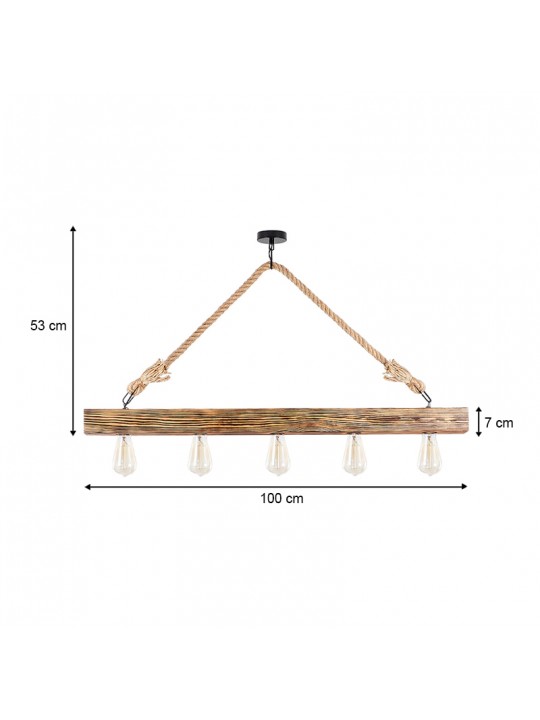 Φωτιστικό οροφής Erebos Megapap E27 ξύλο - σχοινί πεντάφωτο χρώμα φυσικό 100x7x53εκ.