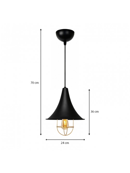 Φωτιστικό οροφής Retro Megapap E27 μεταλλικό μονόφωτο χρώμα μαύρο Φ24x70εκ.