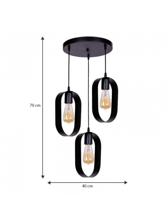 Φωτιστικό οροφής Mordo Megapap E27 μεταλλικό τρίφωτο χρώμα μαύρο 40x40x70εκ.
