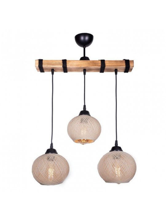 Φωτιστικό οροφής Sirmione Megapap E27 ξύλινο - σχοινί τρίφωτο χρώμα μπεζ - φυσικό 49x17x75εκ.