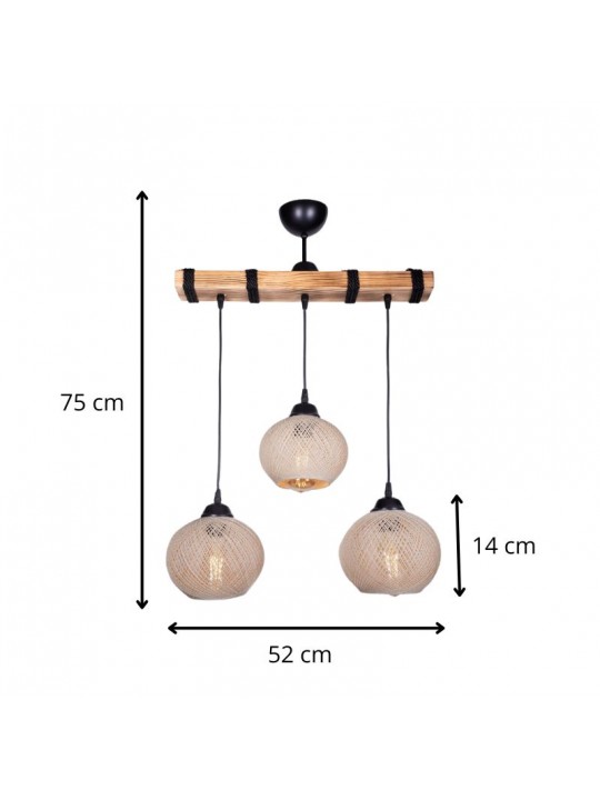- Σκελετός από φυσικό ξύλο υψηλής ποιότητας με αντοχή στη φθορά και στο χρόνο και σχοινί μεγάλης ανθεκτικότητας ειδικά σχεδιασμένο για φωτιστικά.
