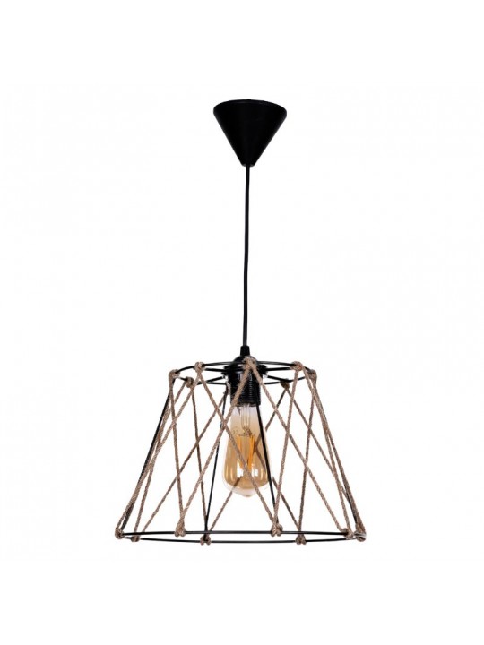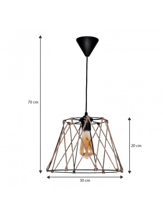 Φωτιστικό οροφής Andro Megapap E27 μεταλλικό - σχοινί μονόφωτο χρώμα μαύρο - φυσικό Ø30x70εκ.