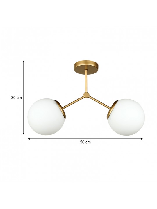 Φωτιστικό οροφής Alison Megapap Ε27 μεταλλικό - γυάλινο δίφωτο χρώμα χρυσό Ø50x30εκ.