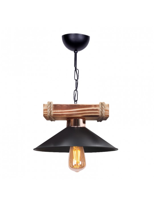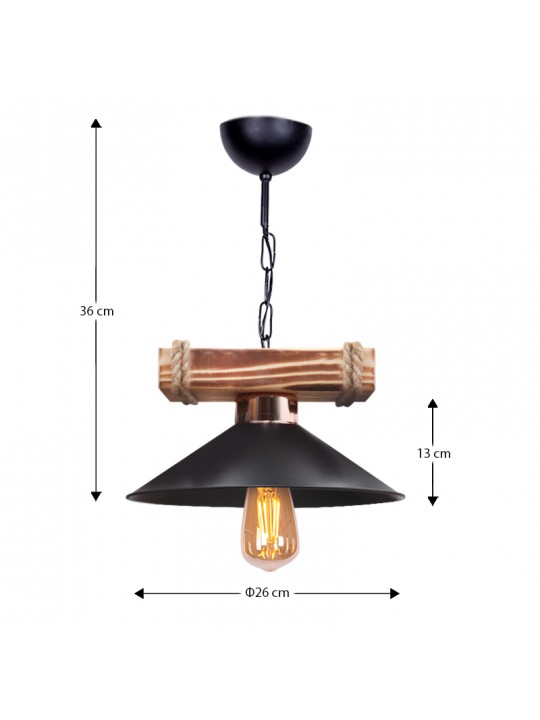 Φωτιστικό οροφής Melio Megapap E27 ξύλινο - πλαστικό μονόφωτο χρώμα μαύρο Ø26x36εκ.