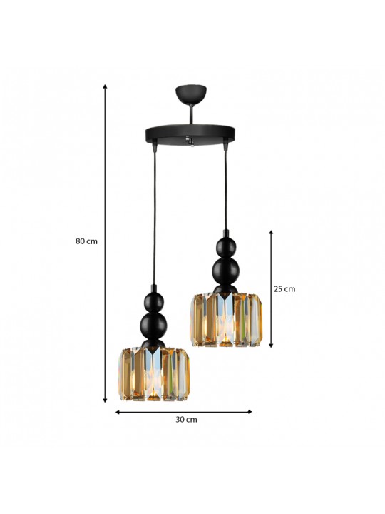 Φωτιστικό οροφής Alaba Megapap E27 μεταλλικό - γυάλινο δίφωτο χρώμα μαύρο 30x30x80εκ.
