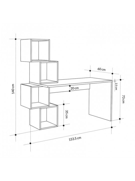 • Πάχος μελαμίνης: Η επιφάνεια του γραφείου και το πόδι στήριξης 25mm , οι ραφιέρες 18mm.