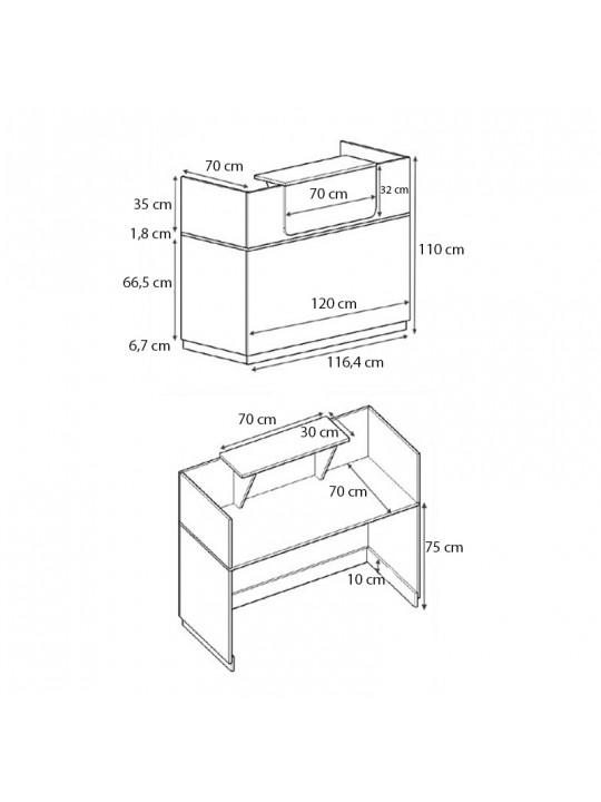 - Διαστάσεις: Μήκος 120 x Βάθος 70 x Ύψος 110 εκ.