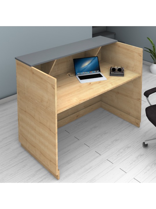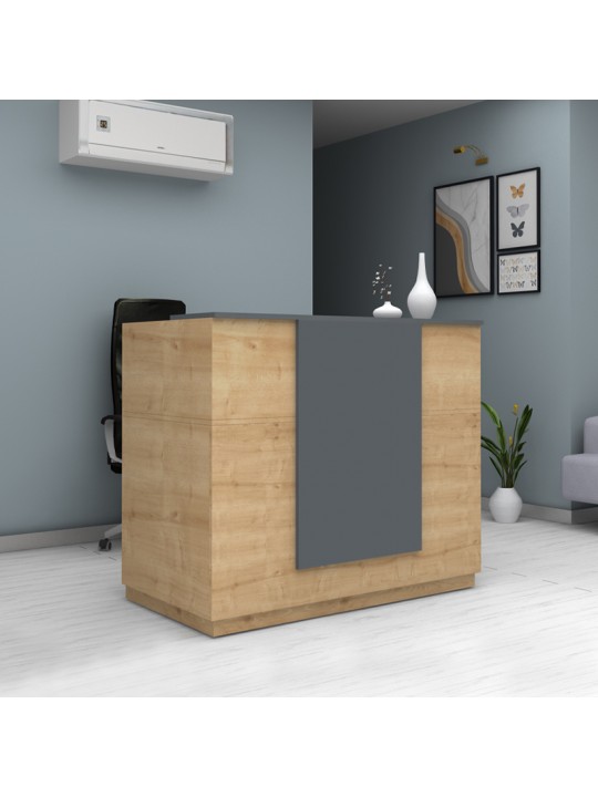 Γραφείο υποδοχής - reception Gemini Megapap χρώμα φυσικό οξιάς - ανθρακί 150x70x110εκ.