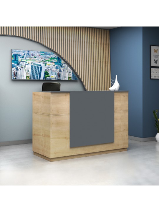 Γραφείο υποδοχής - reception Gemini Megapap χρώμα φυσικό οξιάς - ανθρακί 180x70x110εκ.
