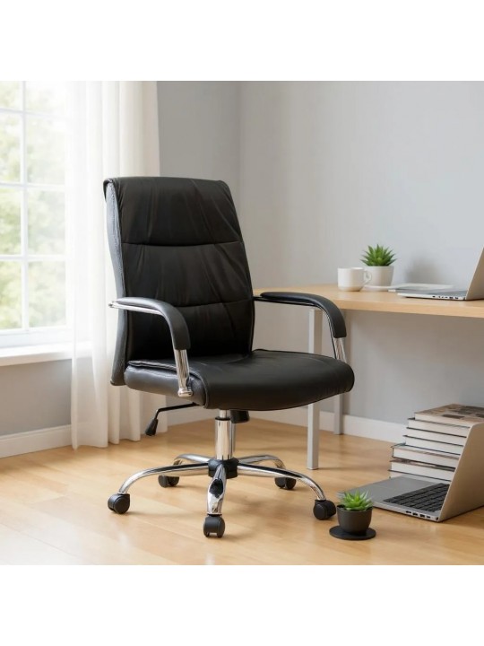 Καρέκλα γραφείου διευθυντική Matteo Megapap από τεχνόδερμα χρώμα μαύρο 60x66x105/115εκ.