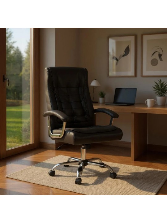 Καρέκλα γραφείου διευθυντική Vision Megapap από τεχνόδερμα χρώμα μαύρο 63x70x112/120εκ.
