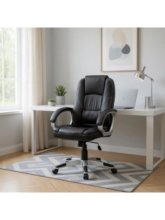 Καρέκλα γραφείου διευθυντική Robie Megapap από τεχνόδερμα χρώμα μαύρο 64x62x108/118εκ.