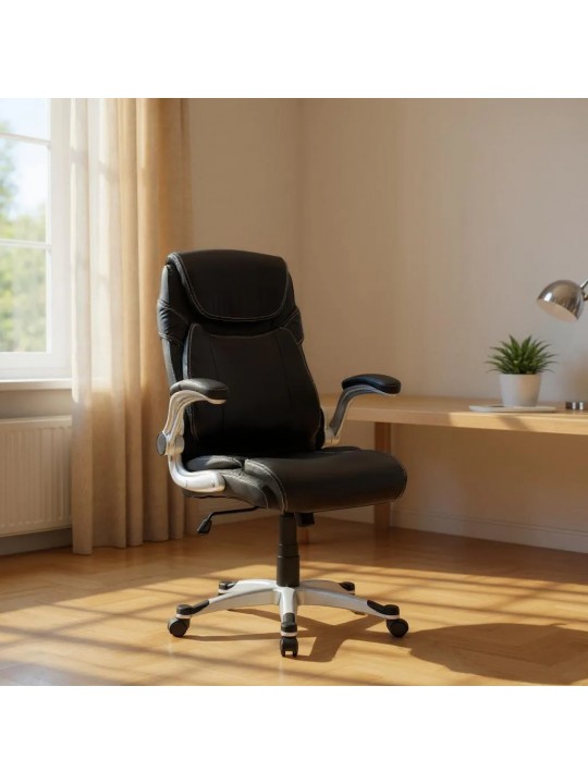 Καρέκλα γραφείου διευθυντική Gustavo Megapap από τεχνόδερμα χρώμα μαύρο 69x65x116/126εκ.