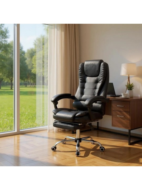 Καρέκλα γραφείου διευθυντική Daria Megapap με υποπόδιο από τεχνόδερμα χρώμα μαύρο 65x65x117/127εκ.