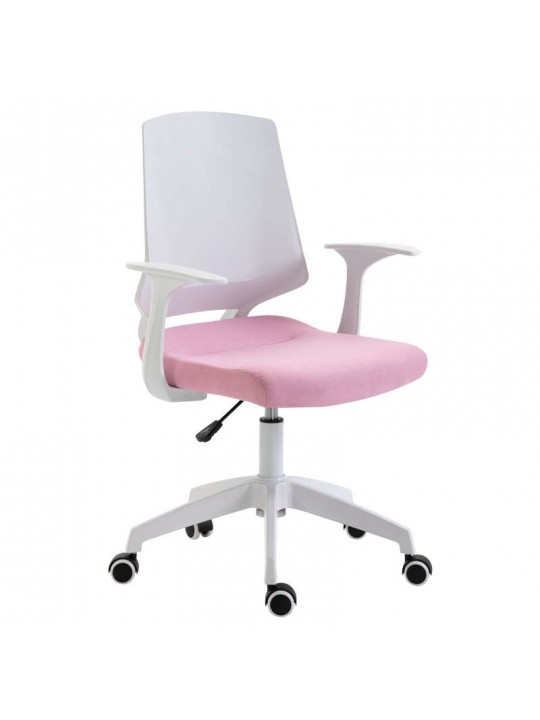 A1150-W πολυθρόνα γραφείου με minimal σχεδίαση και λευκή πλάτη χωρίς υφασμάτινη επένδυση για μέγιστη ευκολία στο καθάρισμα και ανθεκτικότητα. Η έδρα είναι ενδεδυμένη με ροζ ύφασμα και προσφέρει ξεκούραστο κάθισμα. Τα μπράτσα το αμορτισέρ και η βάση είναι λευκά. Το κάθισμα ρυθμίζεται στο επιθυμητό ύψος ανάλογα με το ύψος του γραφείου που χρησιμοποιούμε και το ύψος του χρήστη.