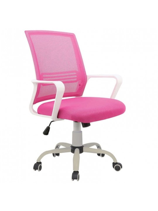 A1600-W πολυθρόνα γραφείου με ροζ mesh διάτρητο ύφασμα για να αποτρέπει την εφίδρωση και ιδιαίτερο σχεδιασμό για μοντέρνους χώρους. Η ελαστικότητα του υφάσματος ακολουθεί την κλήση του σώματος ώστε να προσαρμόζεται στις ανάγκες του κάθε χρήστη. Τα μπράτσα είναι σταθερά σε λευκό χρώμα. Το κάθισμα ρυθμίζεται στο επιθυμητό ύψος, ο μηχανισμός ανάκλισης ξεκουράζει σε πολλές ώρες εργασίας και όταν χρειάζεται το κάθισμα κλειδώνει σε όρθια θέση. Το αμορτισέρ έχει λευκό προστατευτικό κάλυμμα. Η βάση είναι μεταλλική για μεγαλύτερη αντοχή σε λευκό χρώμα.